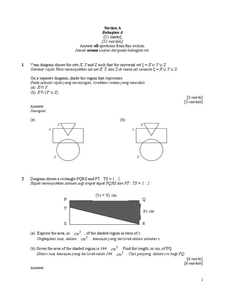 Kertas soalan percubaan matematik untuk calon spm ini disediakan oleh jabatan pelajaran.